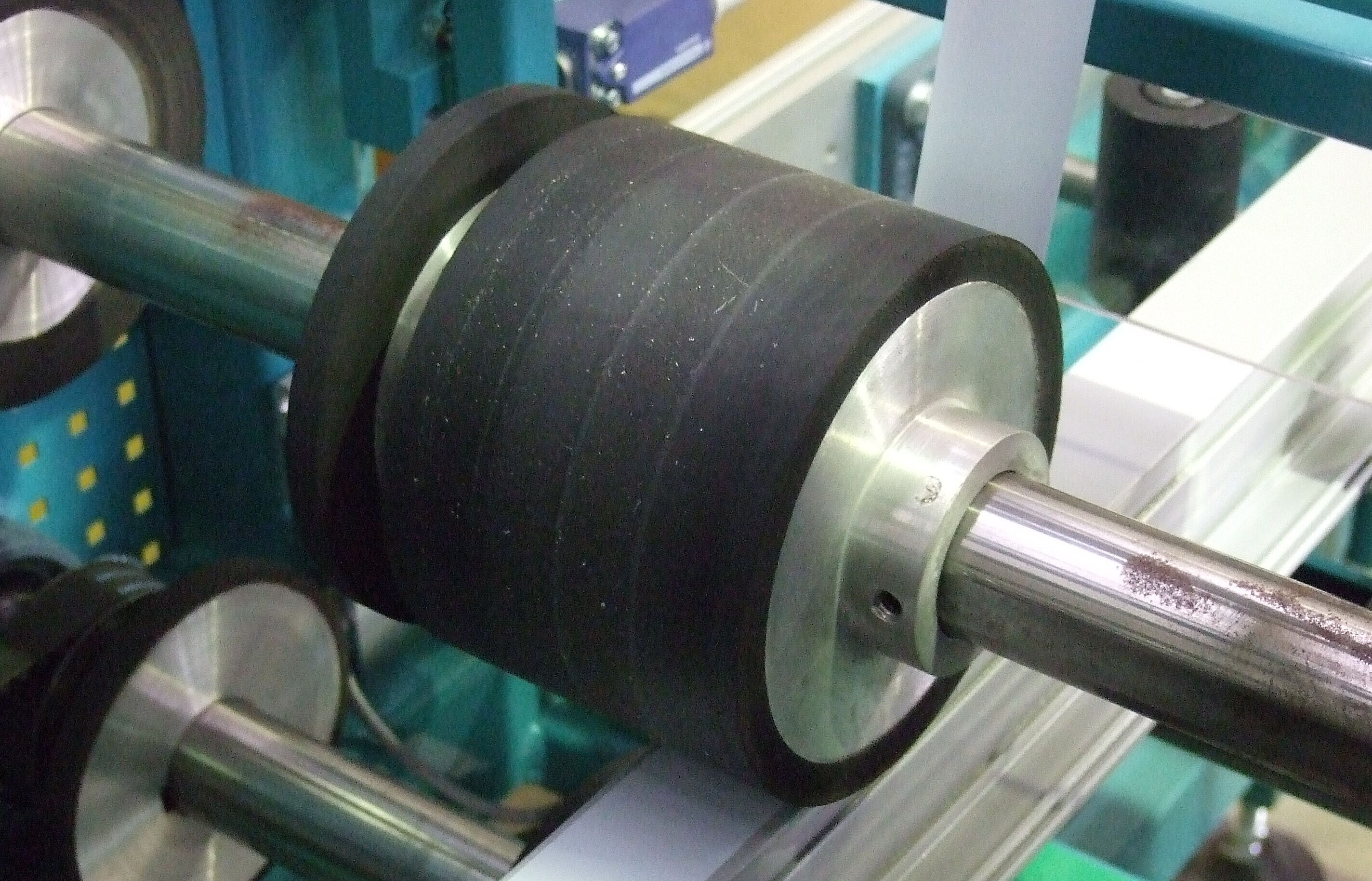 Not only sheets, but also extrusions can be protected with foil at albea. This semi-automatic system can process two opposite surfaces at the same time.